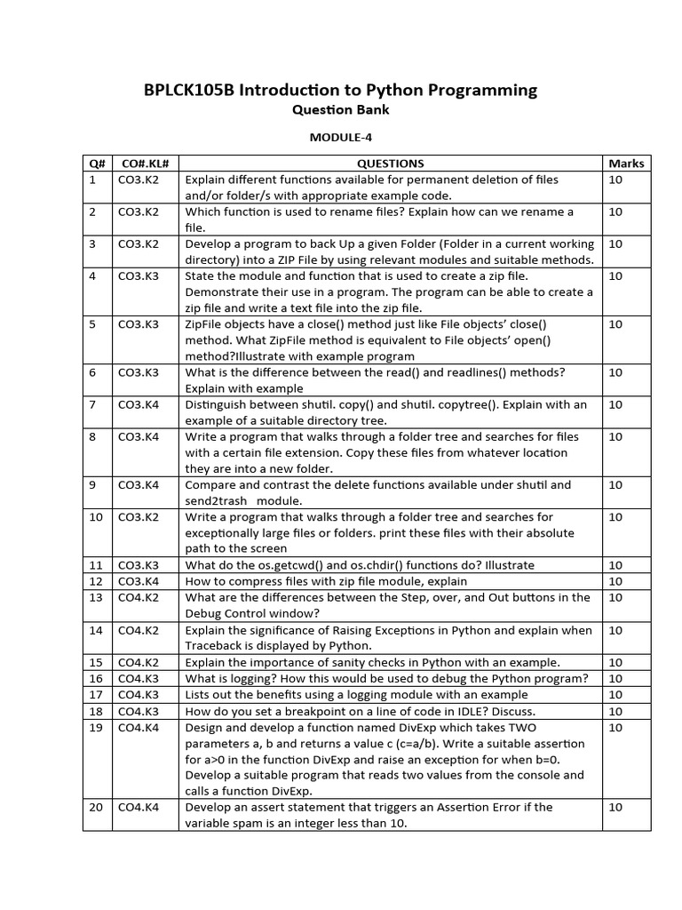 BPLCK105B Introduction To Python Programming: Question Bank | PDF ...