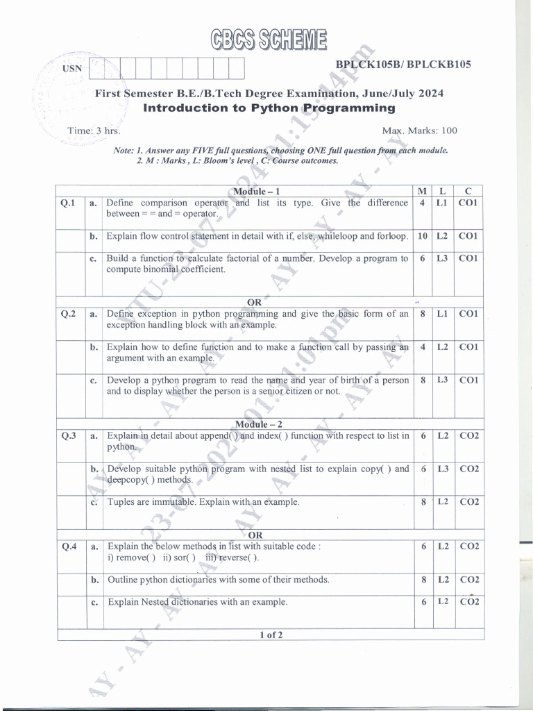 VTU Introduction To Python Programming Model Question Paper With Answer ...