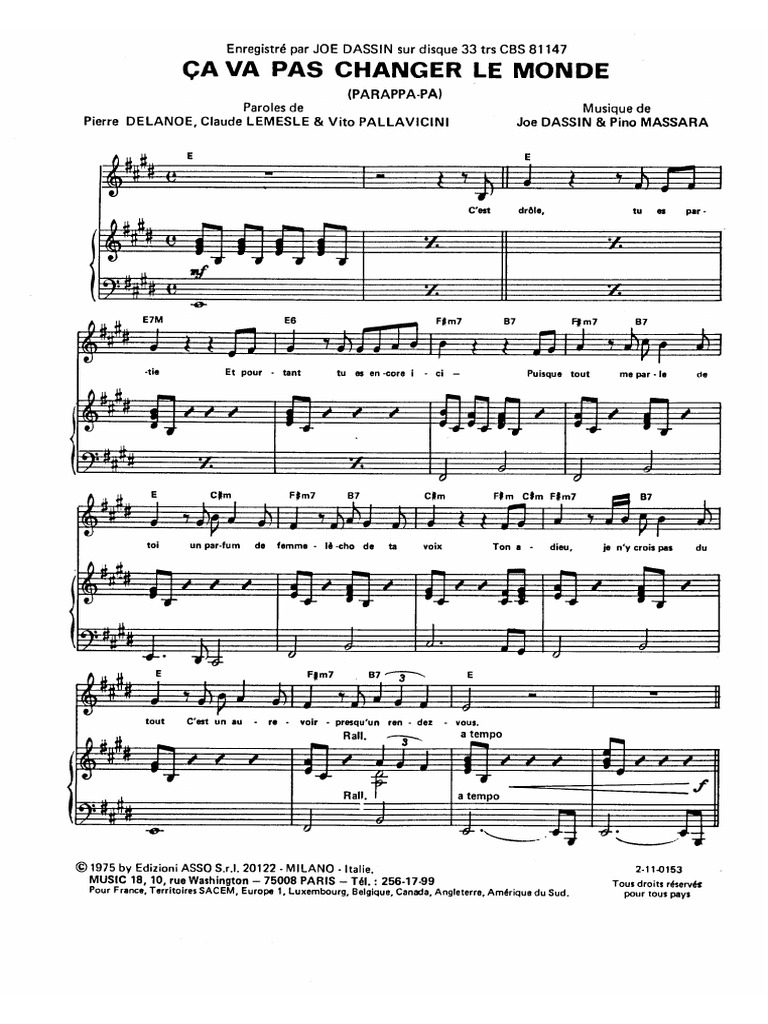 Ça Va Pas Changer Le Monde - Joe Dassin (Paroles/Lyrics) - YouTube