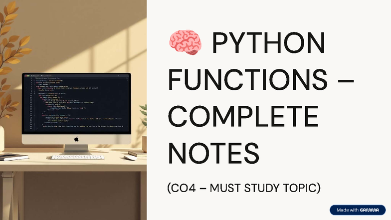 Python Functions Complete Notes (CO4 3 Must Study Topic) - Studocu