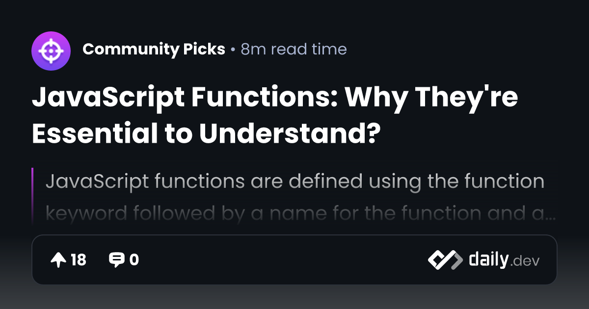 JavaScript Functions: Why They're Essential to Understand? | daily.dev