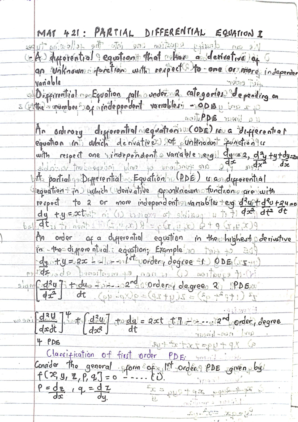 SOLUTION: Partial differential equations handwritten notes - Studypool
