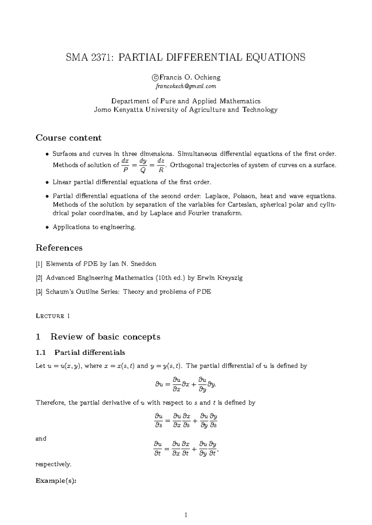 SMA 2371: Lecture Notes on Partial Differential Equations - Studocu