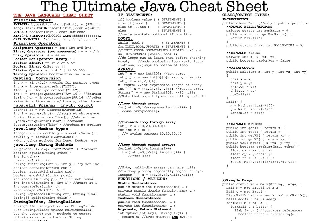 Java Cheat Sheet Pdf Java Cheat Sheets Pdf: 20 Useful One That Every