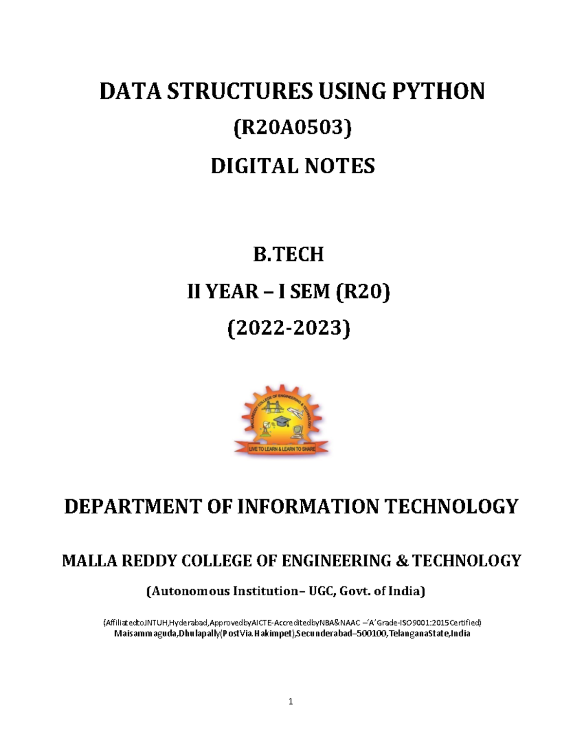 DATA Structures Using Python - DATA STRUCTURES USING PYTHON (R20A0503 ...