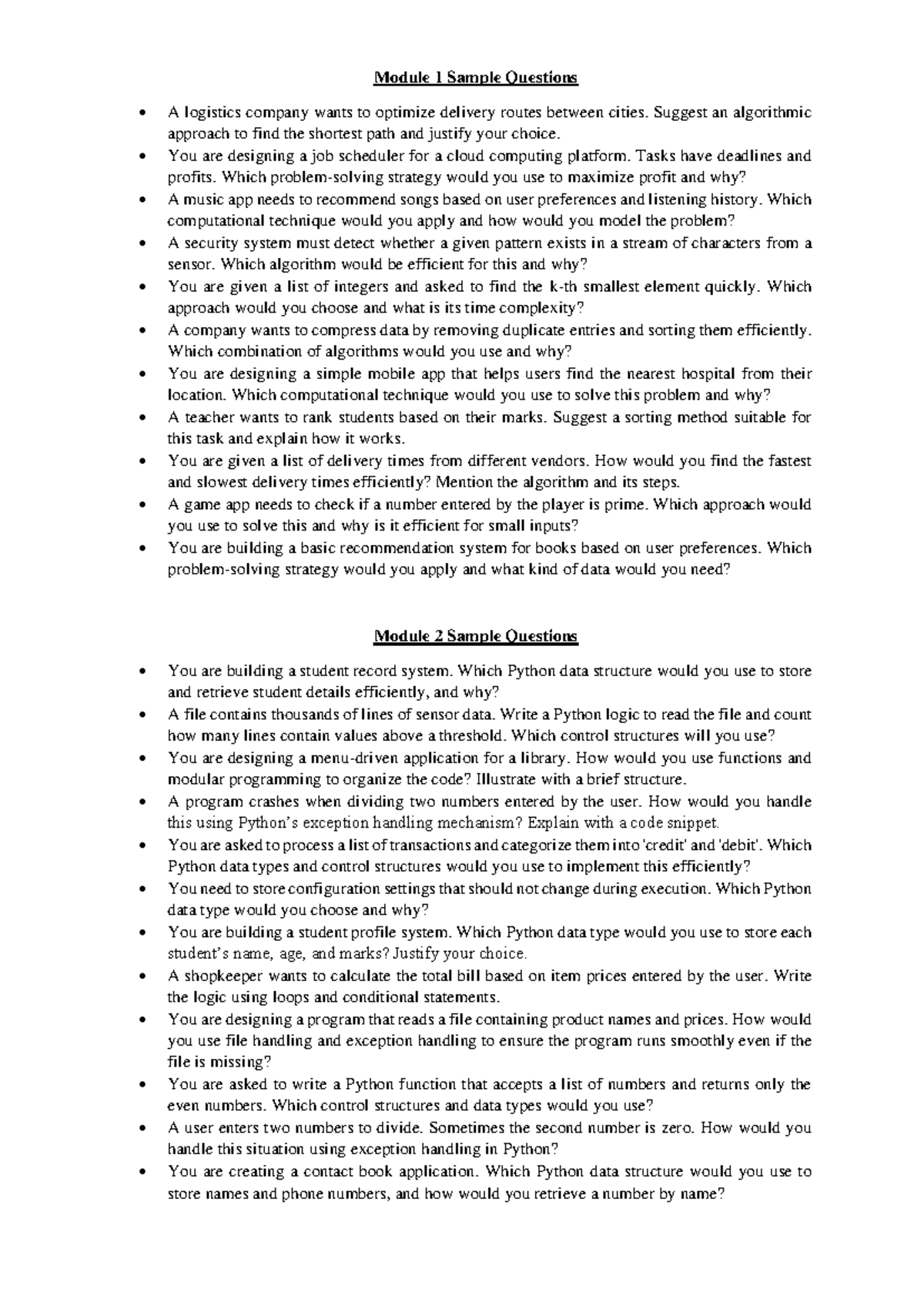 Module 1 & 2 Sample Questions on Algorithm Design and Python ...
