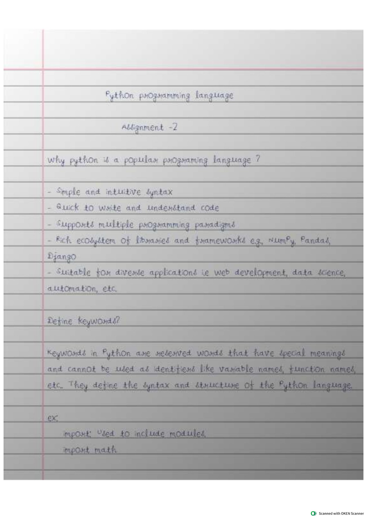 Python Assignment-2: Key Concepts and Practical Examples - Studocu