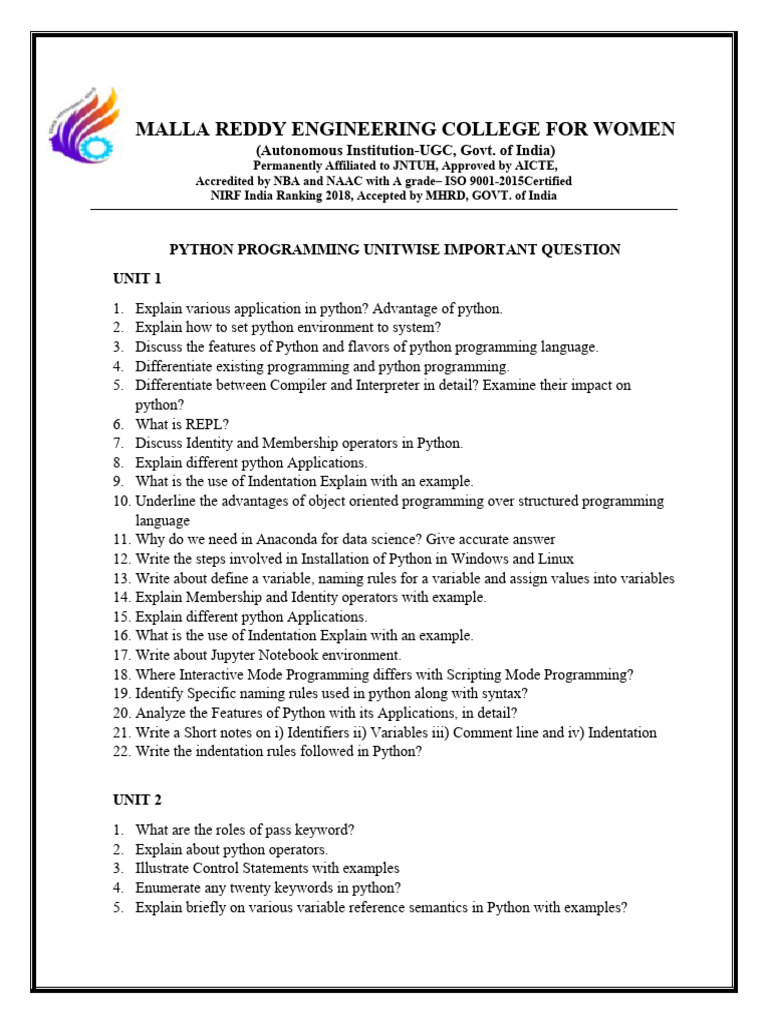 Python Programming IMP - PYTHON PROGRAMMING - UNITWISE IMPORTANT ...