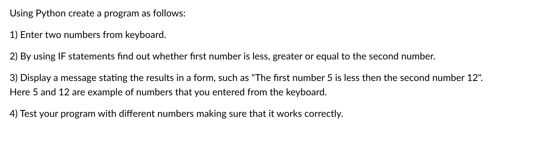 Solved Using Python create a program as follows: 1) Enter | Chegg.com