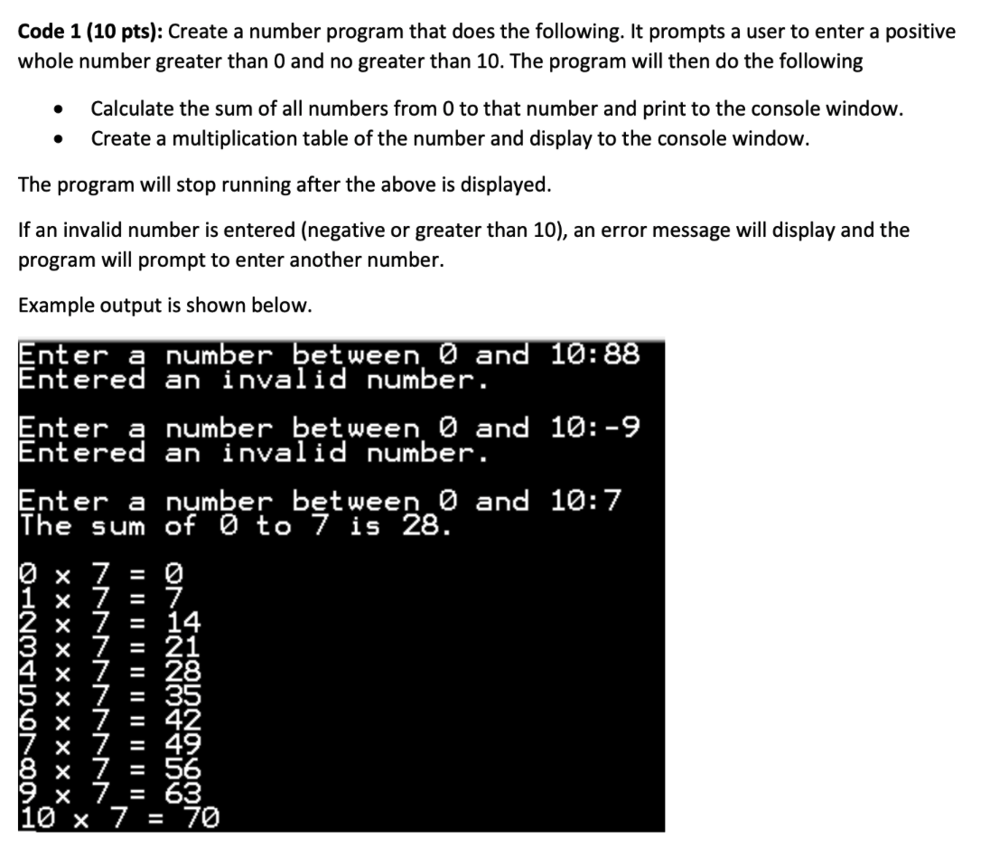 Solved Code 1 (10 pts): Create a number program that does | Chegg.com