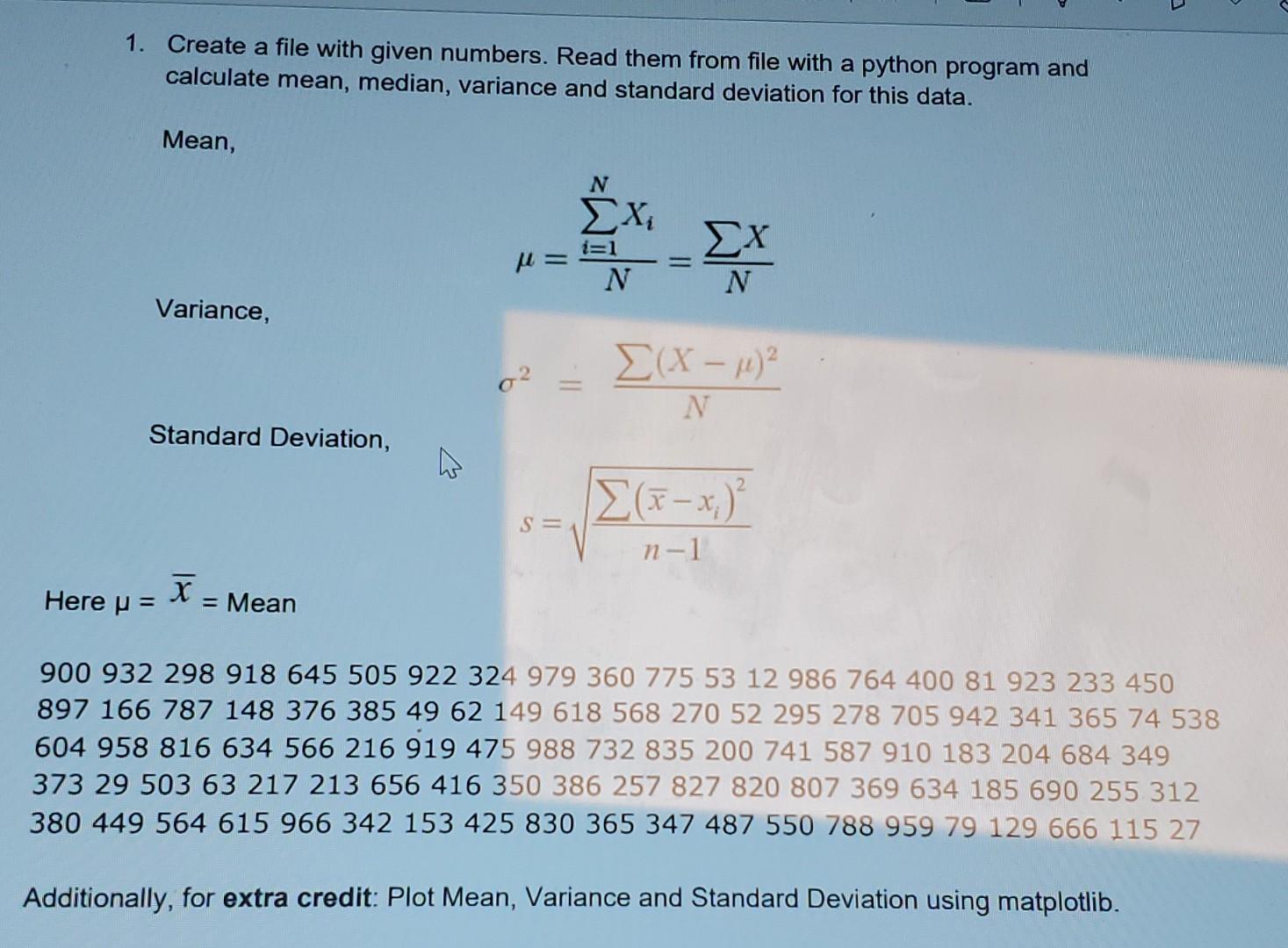 Solved 1. Create a file with given numbers. Read them from | Chegg.com