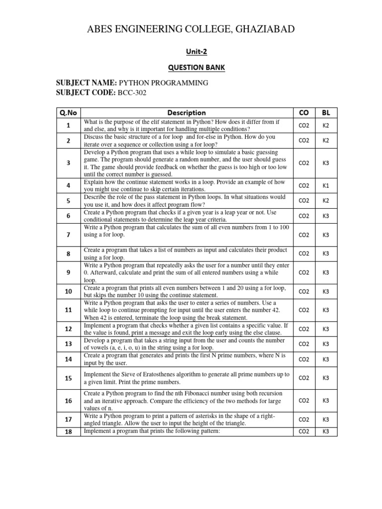 UNIT 1 Python programming Question BANK 2023-24 - ABES ENGINEERING ...