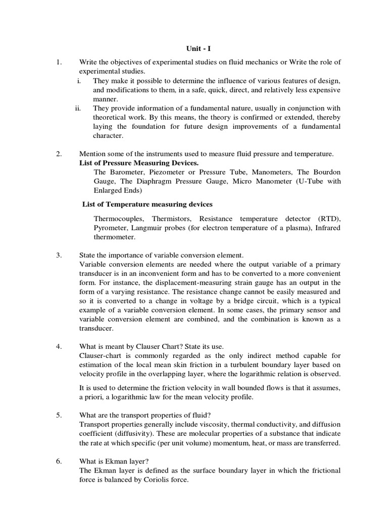 EAD Question Bank Unit Wise | PDF | Fluid Dynamics | Pressure Measurement