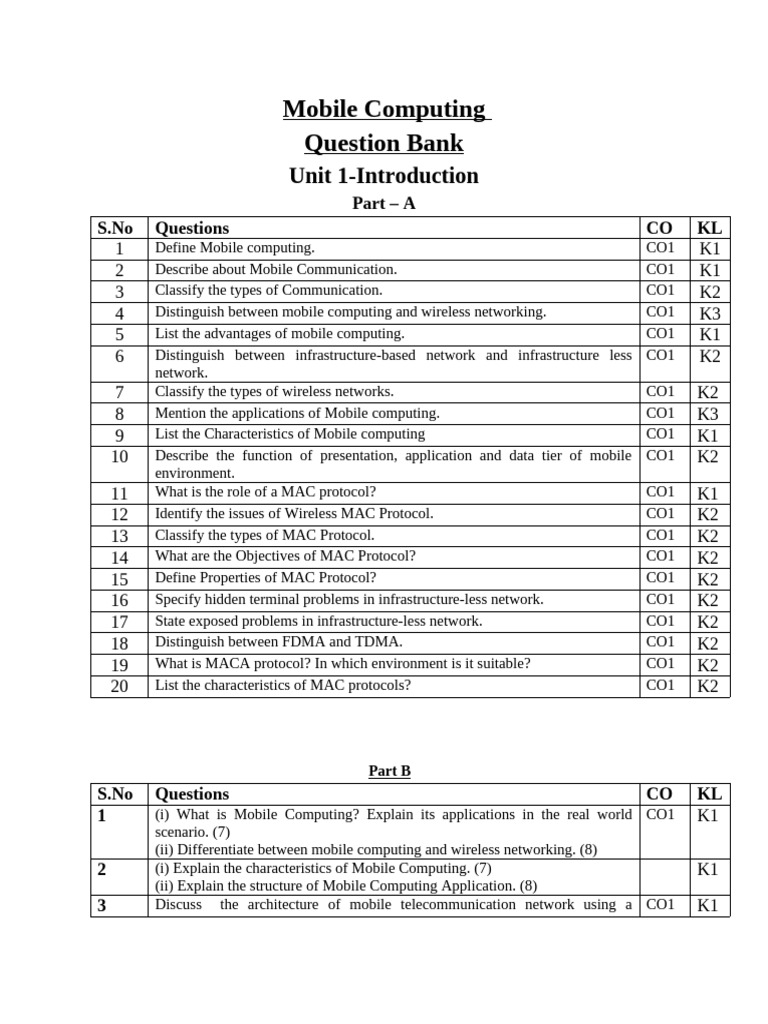 MC_QuestionBank_unit 1 | PDF | Computing | Telecommunications Engineering