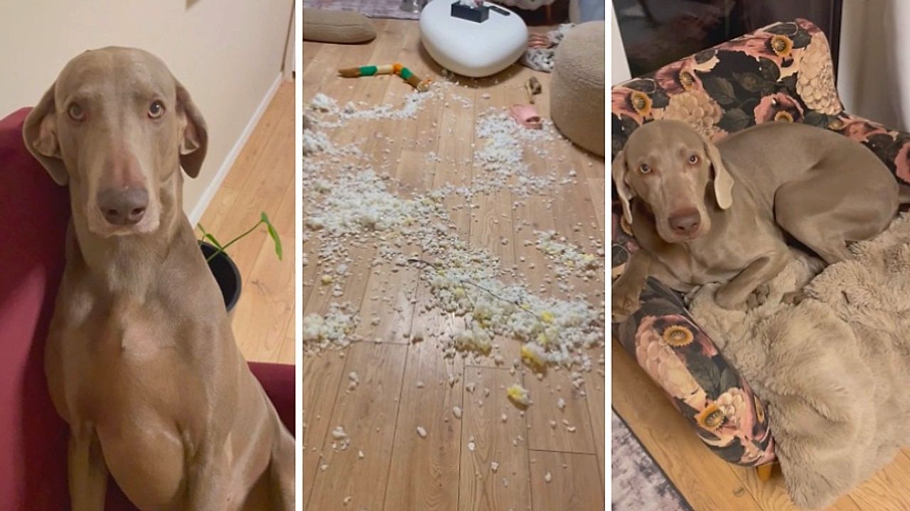 Busted: Dogs tear apart their bed and leave a massive mess behind