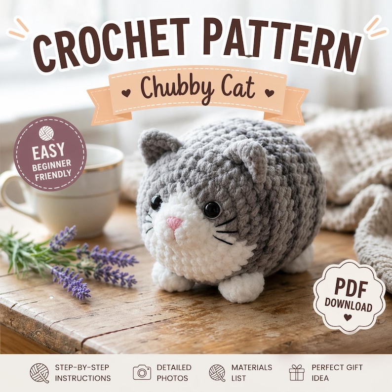 Katzen Häkelmuster PDF, Amigurumi Chubby Cat Anleitung, Video-Tutorial ...