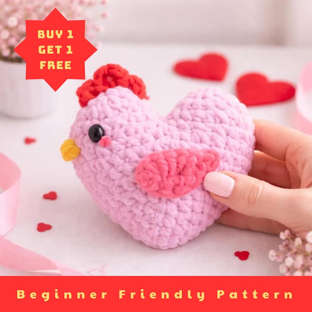 Buy 1 Get 1 Crochet Heart Chicken Pattern PDF, Amigurumi Animal ...