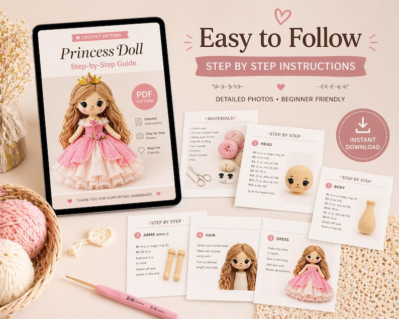 Amigurumi Girl Doll Pattern PDF – Easy Crochet Princess Doll Tutorial ...