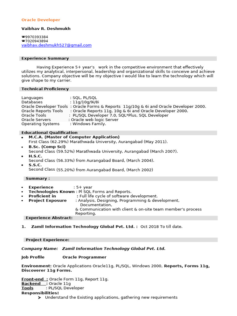 Oracle Developer: Company Name: Zamil Information Technology Global Pvt ...