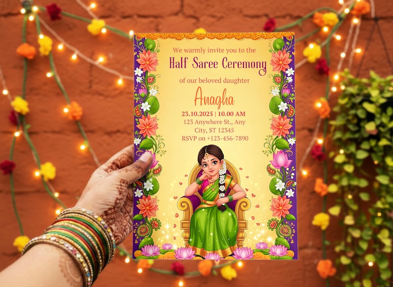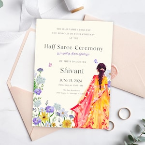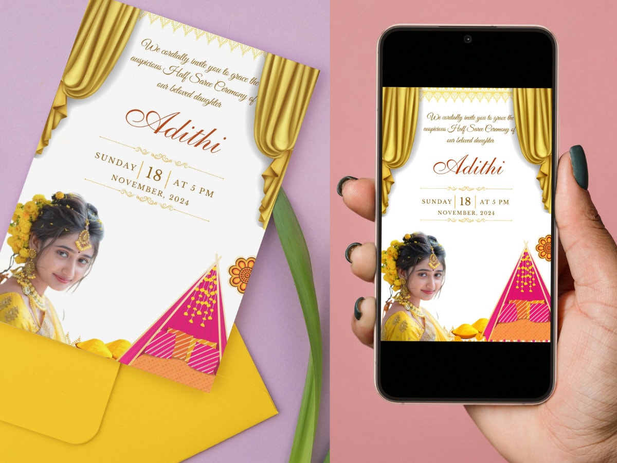 Buy Half Saree Invitation 5x7", Editable Half Saree Ceremony Invitation ...