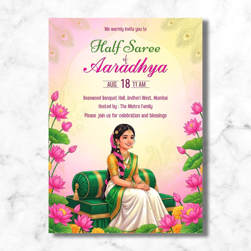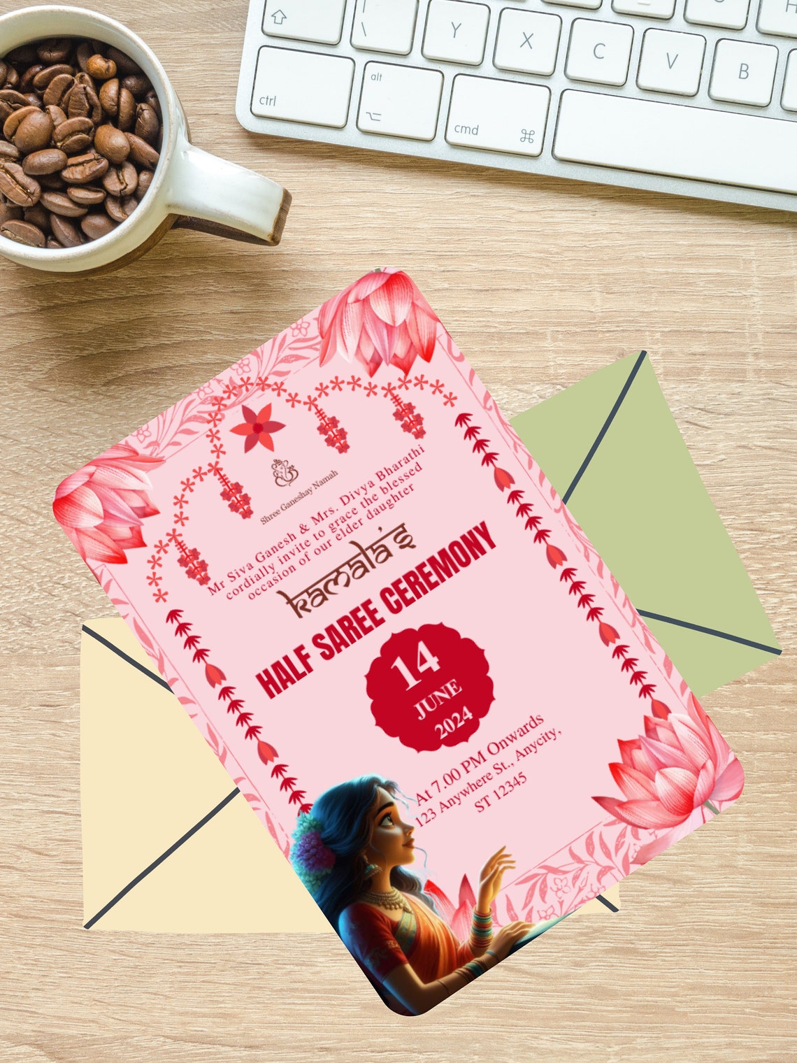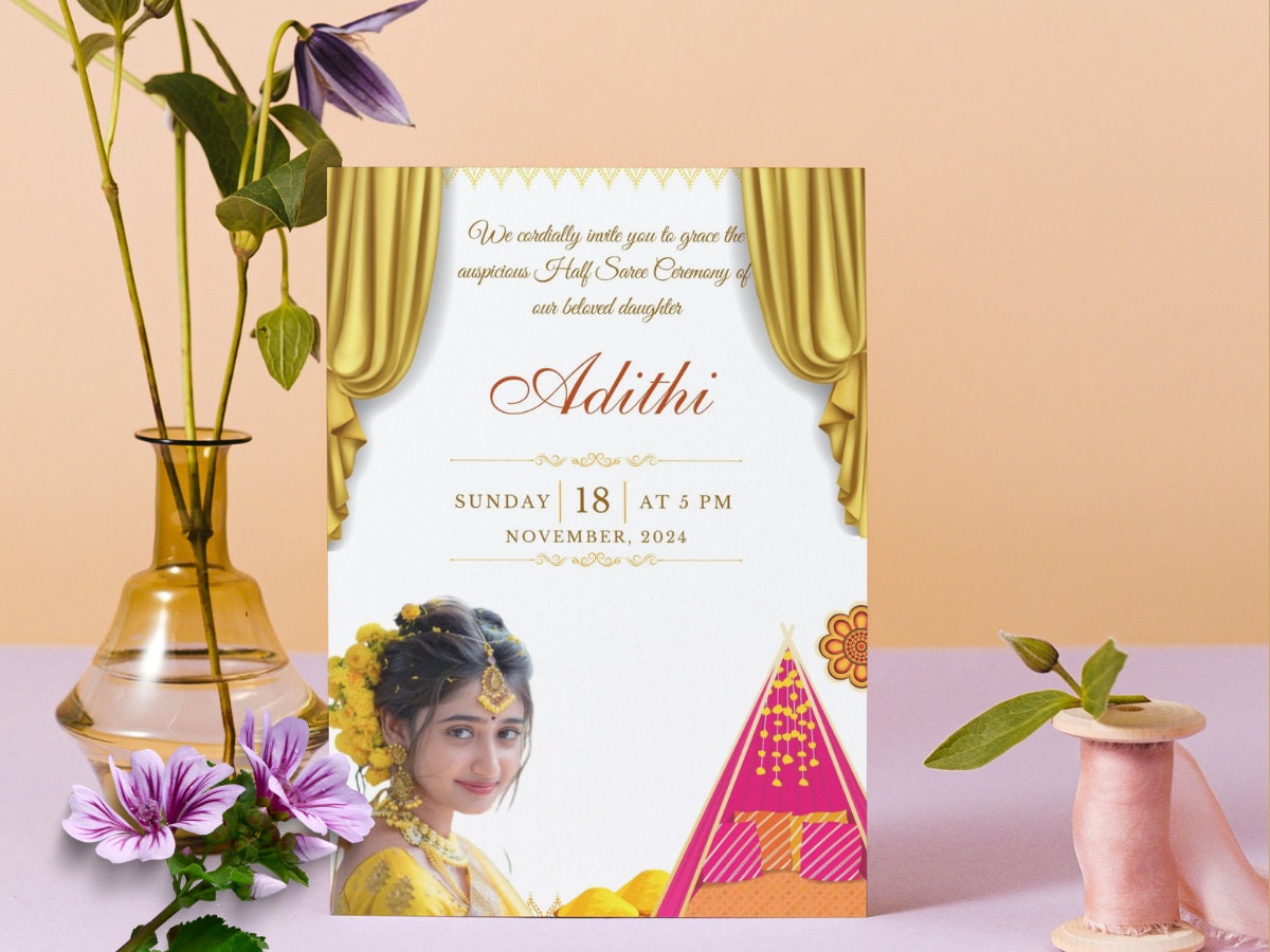 Half Saree Ceremony Invitation, Half Saree Function Invite, Puberty ...