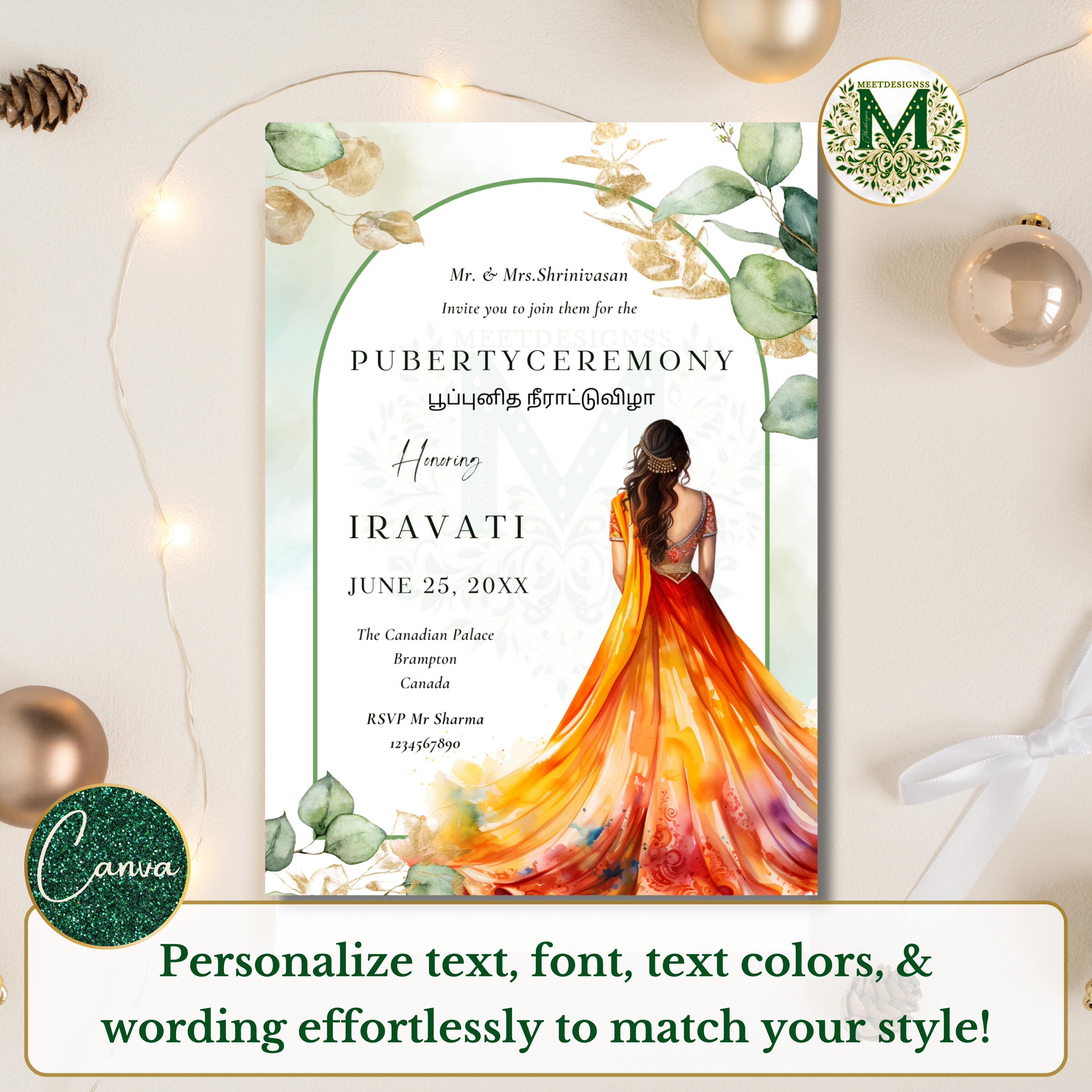 Half Saree & Puberty Ceremony Invitation: Digital Canva Template - Etsy