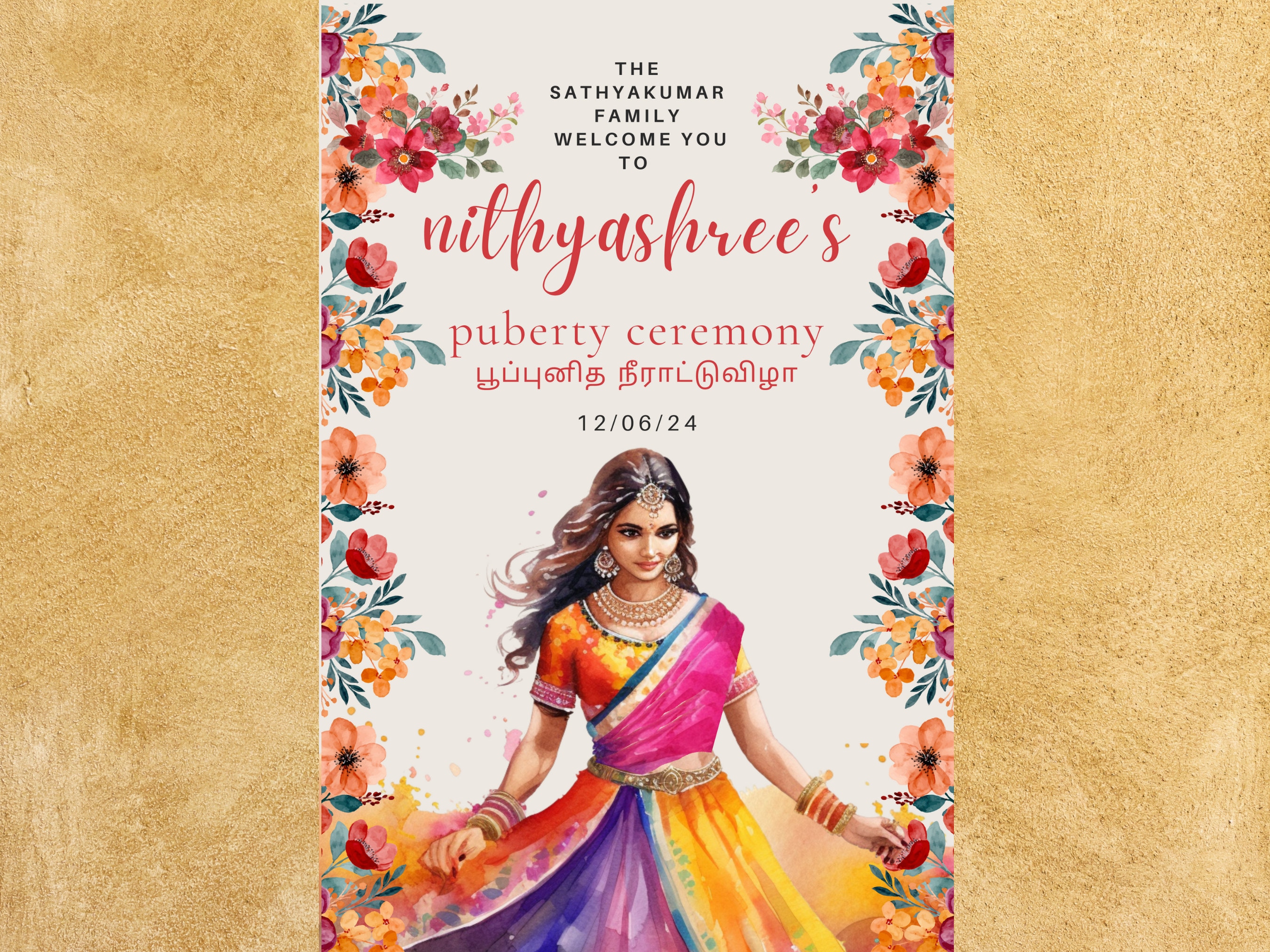 Tamil Puberty Ceremony Invitation Template, Ritu Kala Samskaram Evite ...