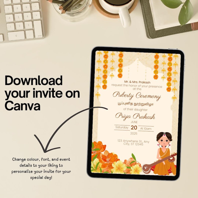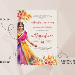 Half Saree Ceremony Invitation: Editable Tamil Puberty Invite (digital ...