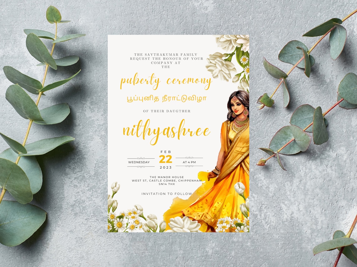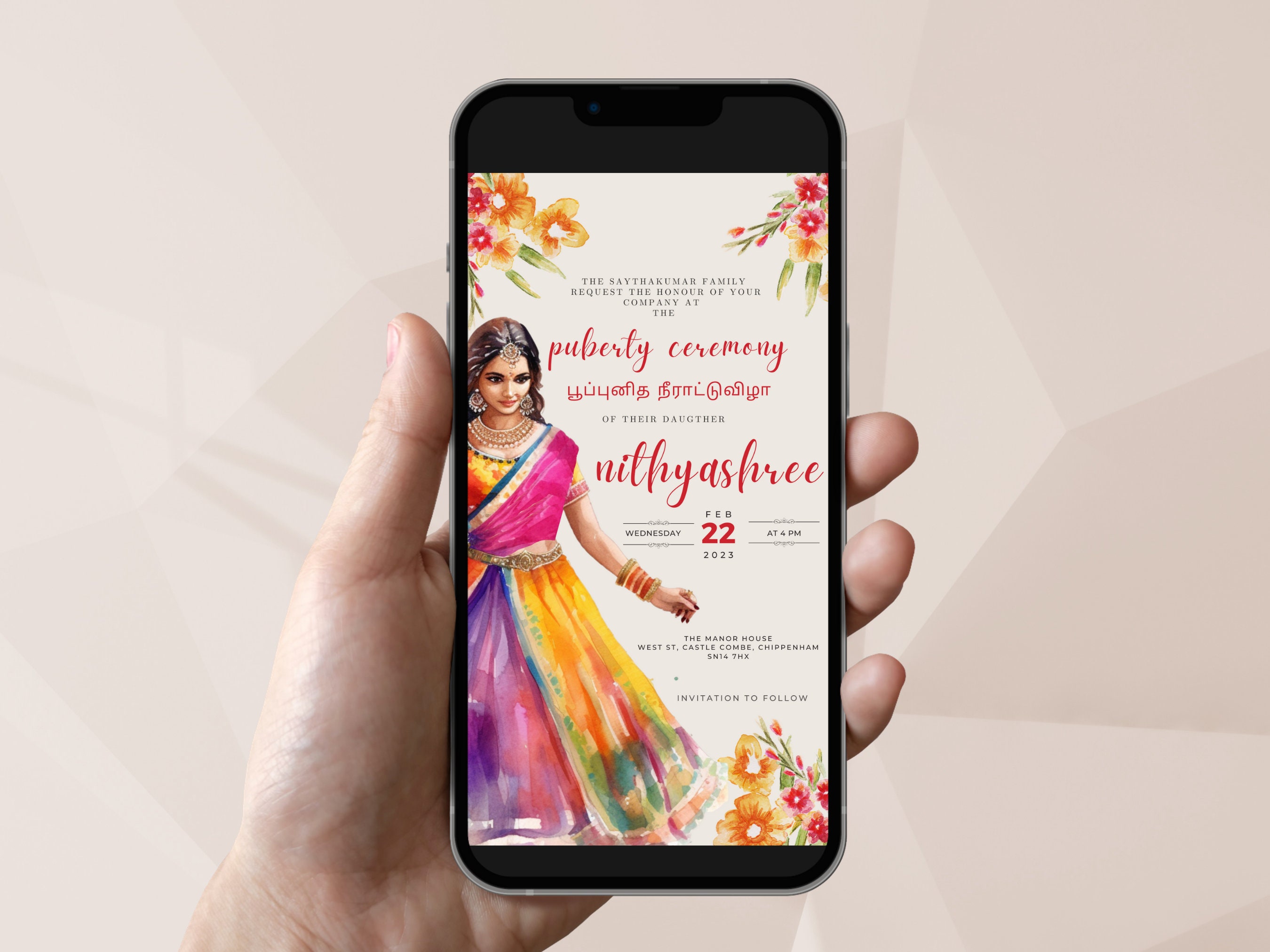 Tamil Puberty Ceremony Invitation | Half Saree Invitation (digital ...