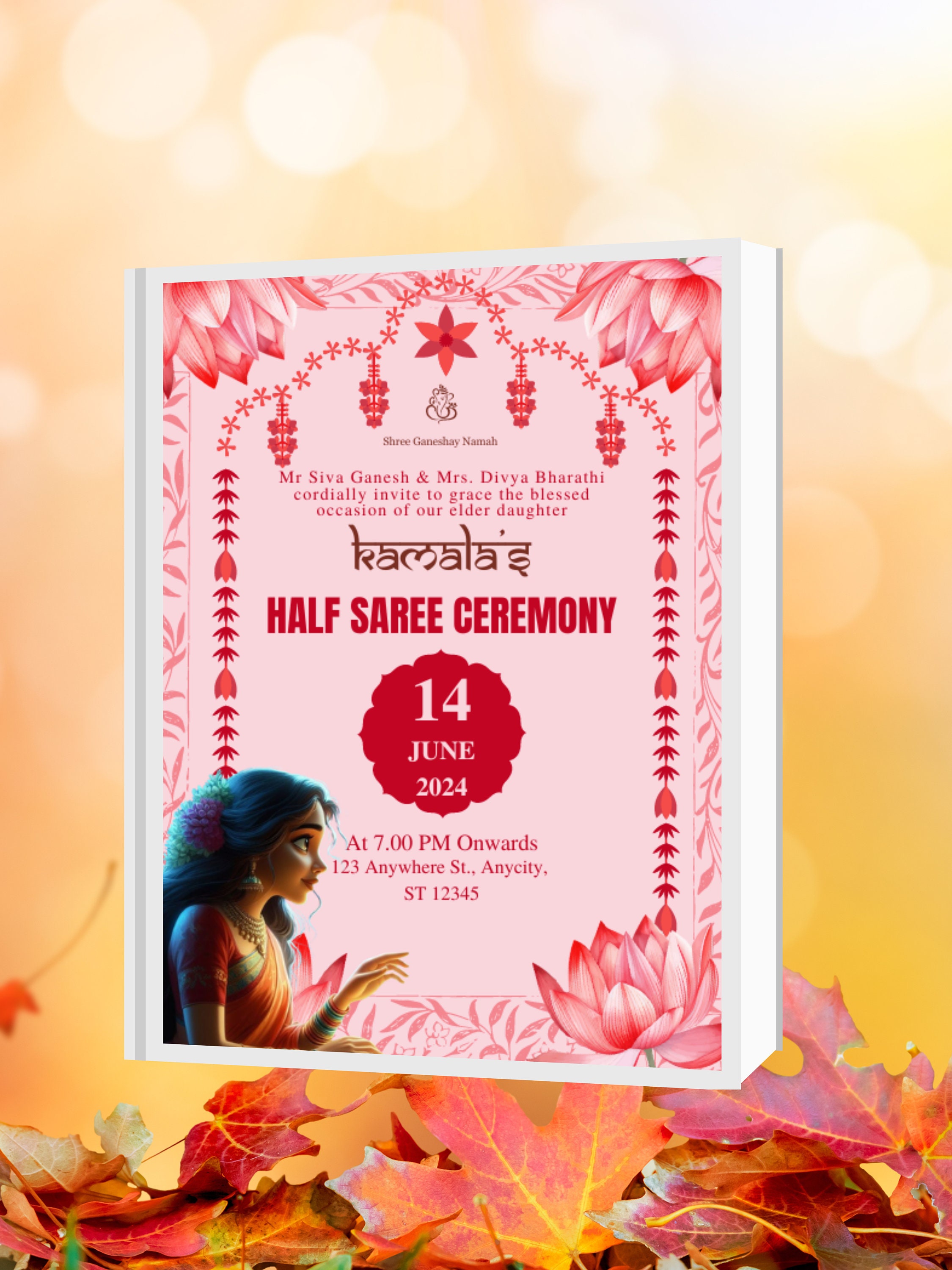 Half Saree Ceremony Invitation & Puberty Ceremony Invitation Digital ...