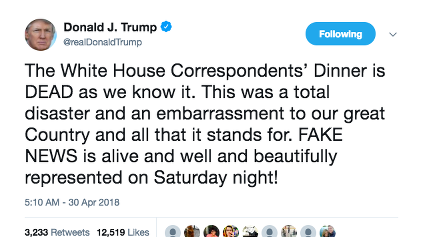 Trump declares Correspondents’ Dinner “DEAD as we know it”