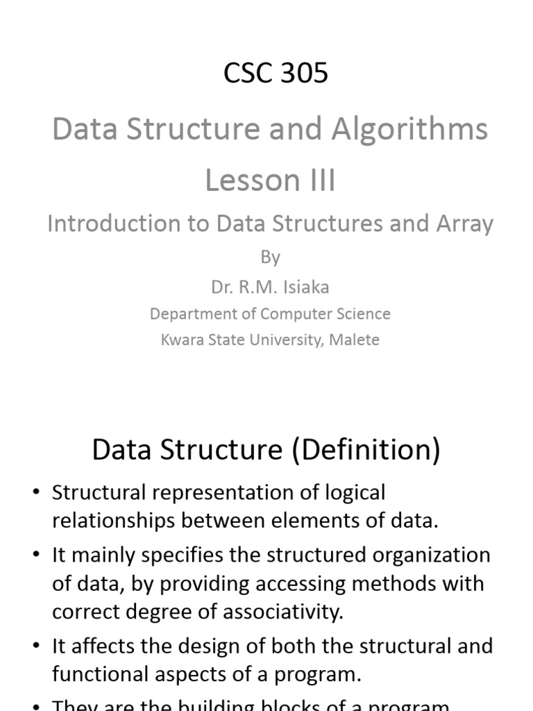 Data Structures and Arrays Overview | PDF | Data Type | Data Structure