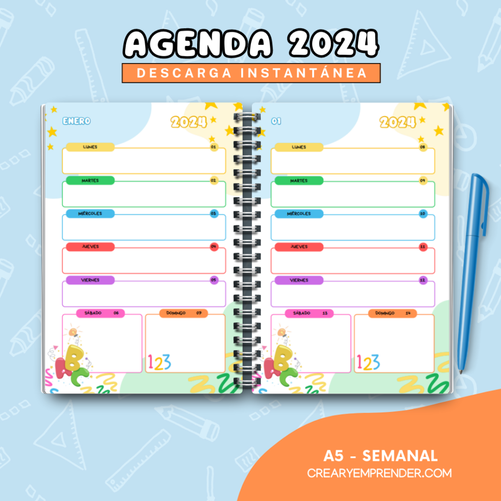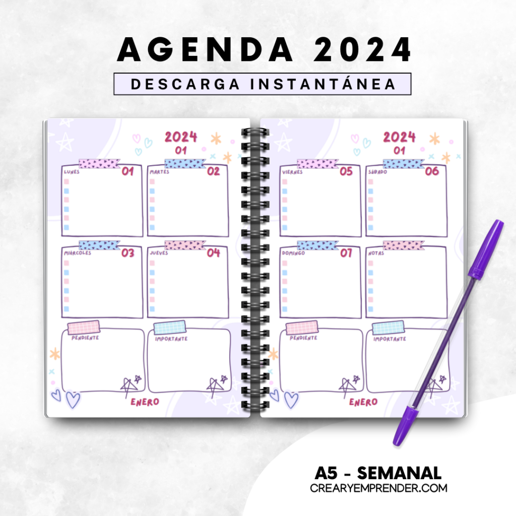 Agenda 2024 – Crear y Emprender | Agendas, Planificador de agenda ...