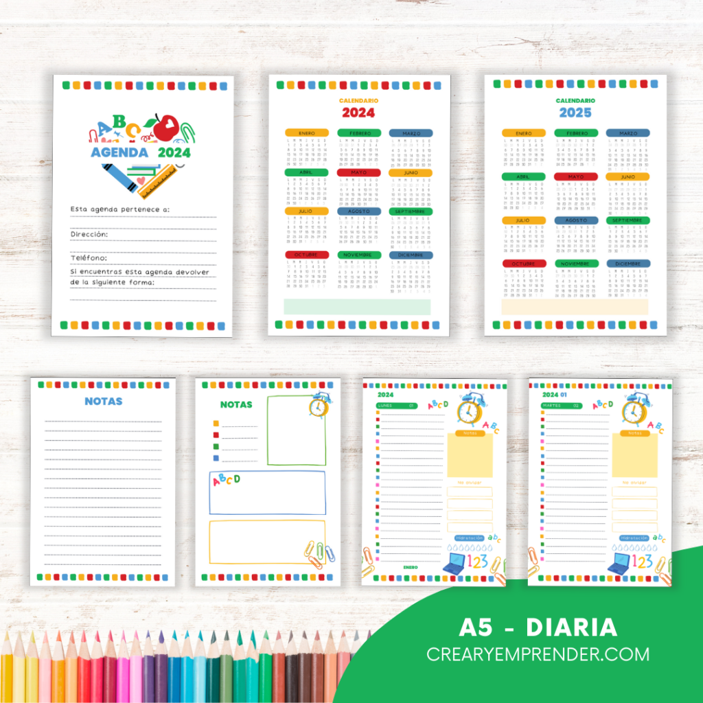 Agenda 2024 – Crear y Emprender | Agendas, Lista de alumnos, Agenda escolar