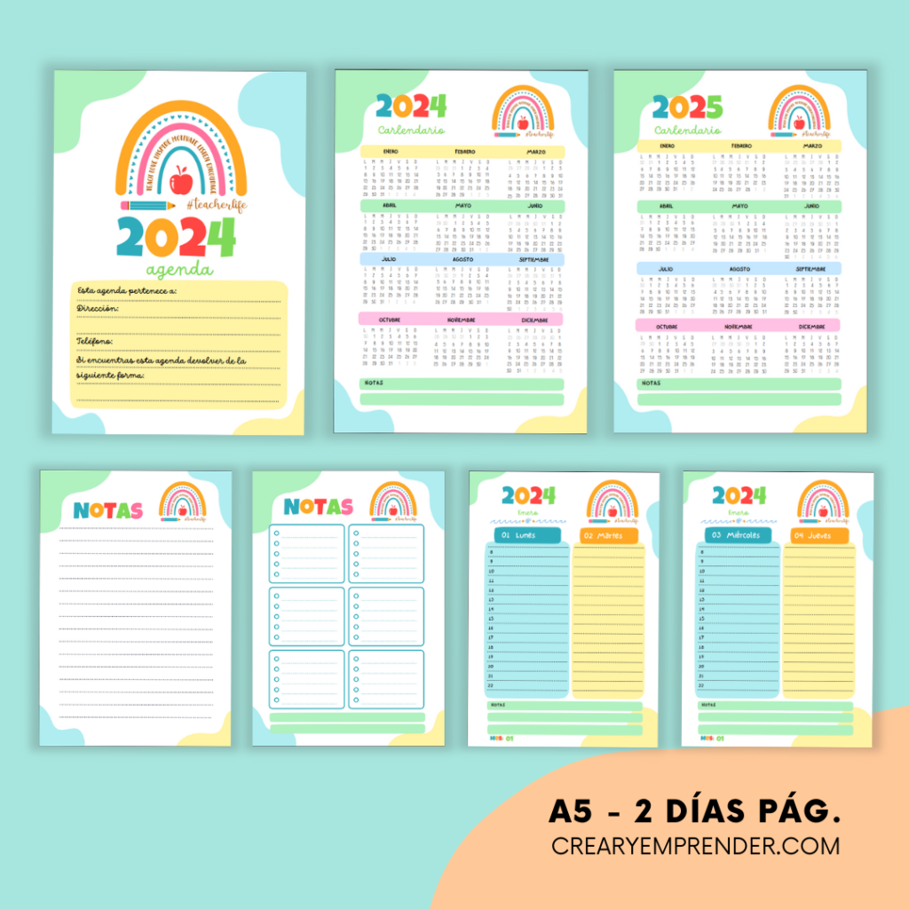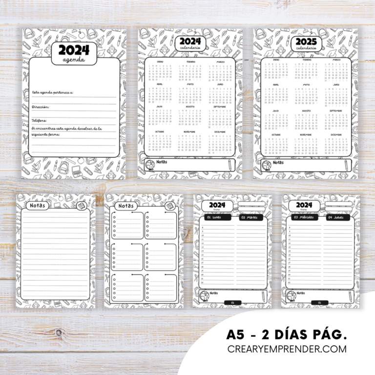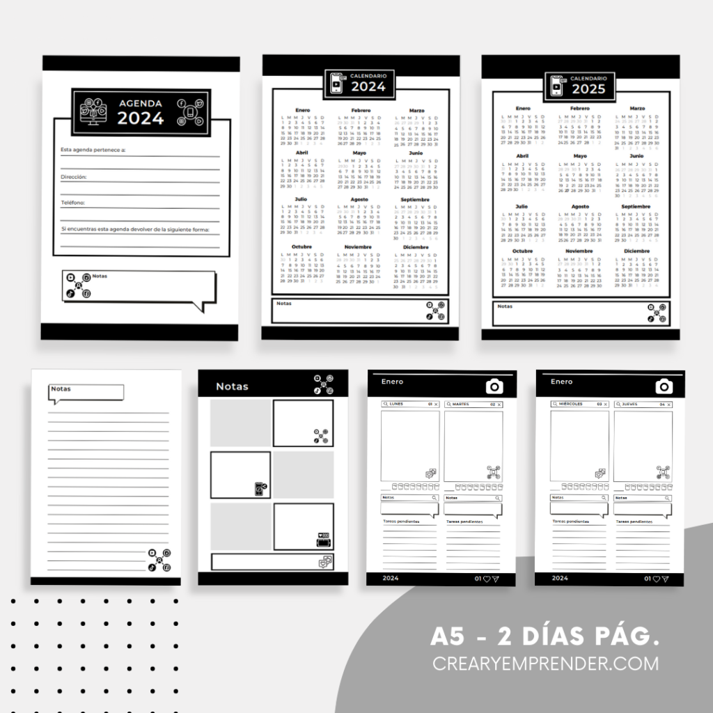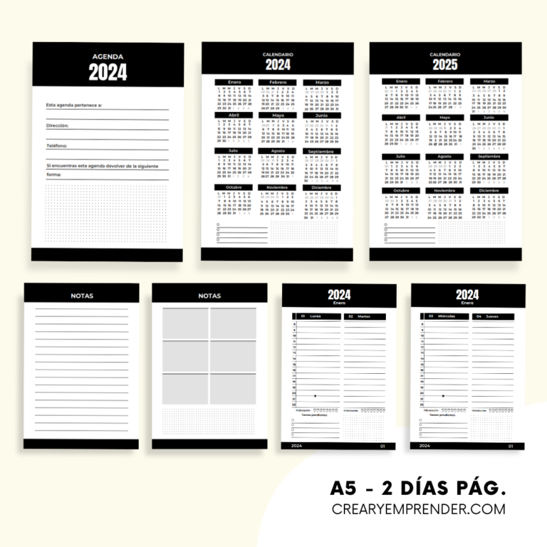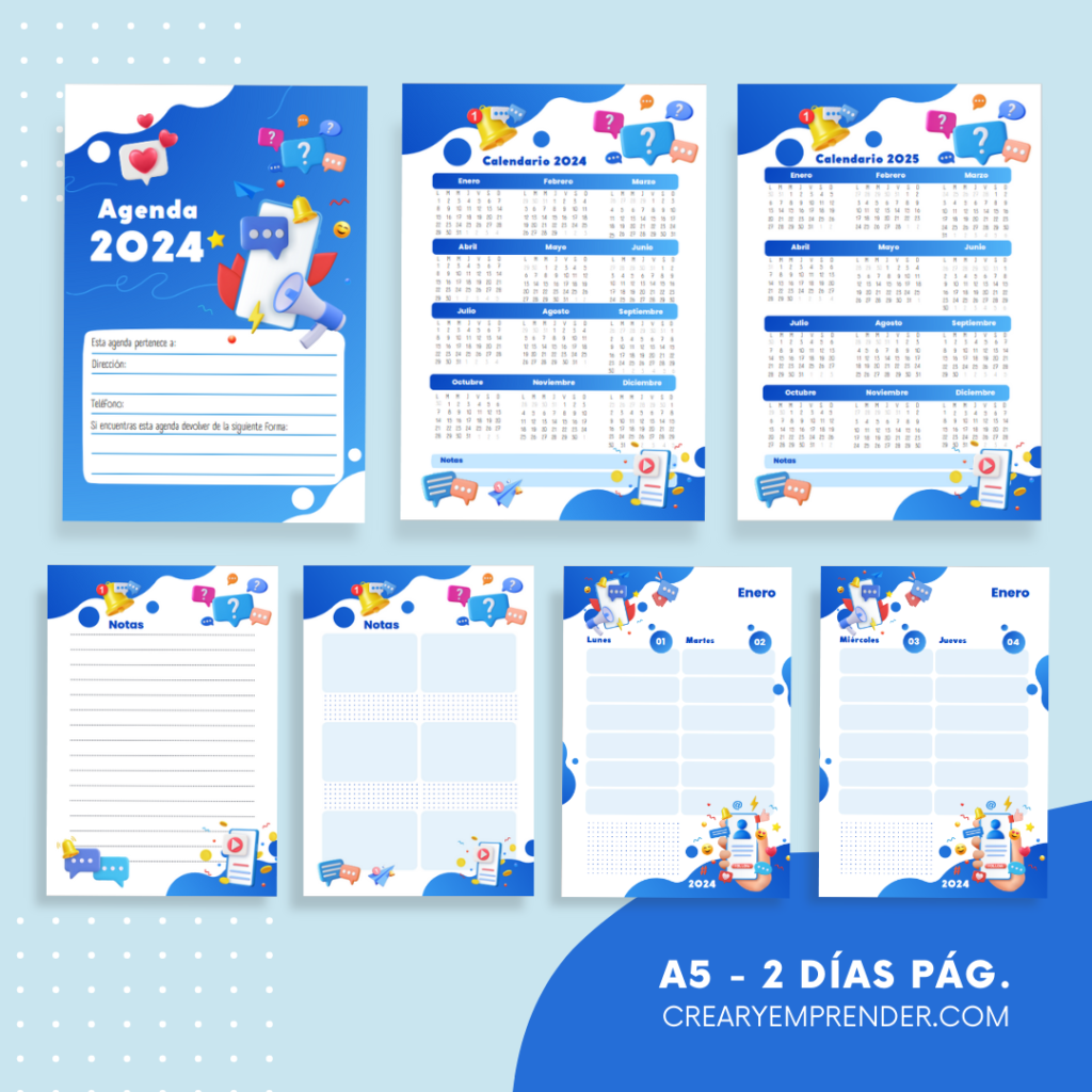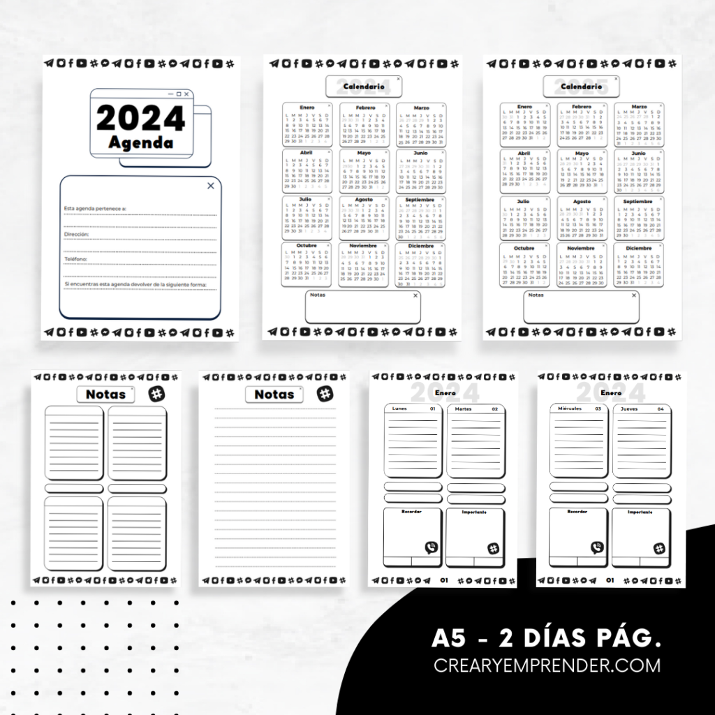 Agenda 2024 – Crear y Emprender | Agendas, Hojas de notas, Imprimible