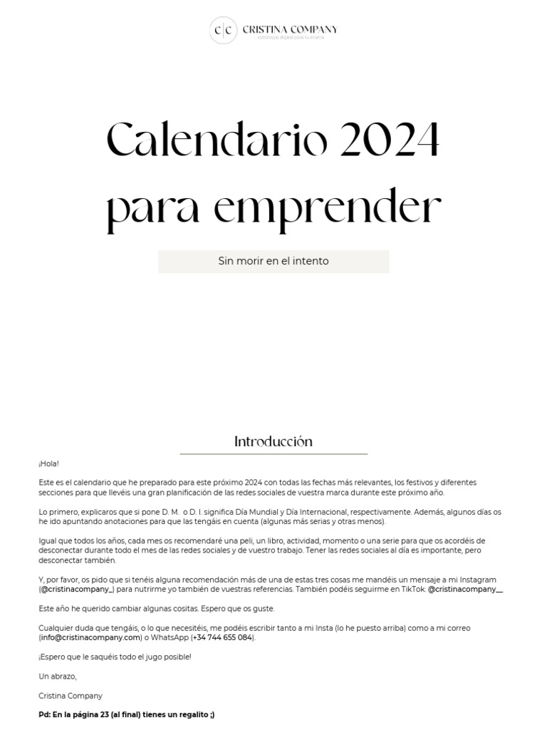 Calendario para emprender 2024 - CRISTINA COMPANY