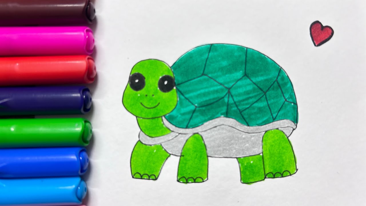How to Draw Turtle Step by Step || Turtle Drawing with Colour | Simple ...