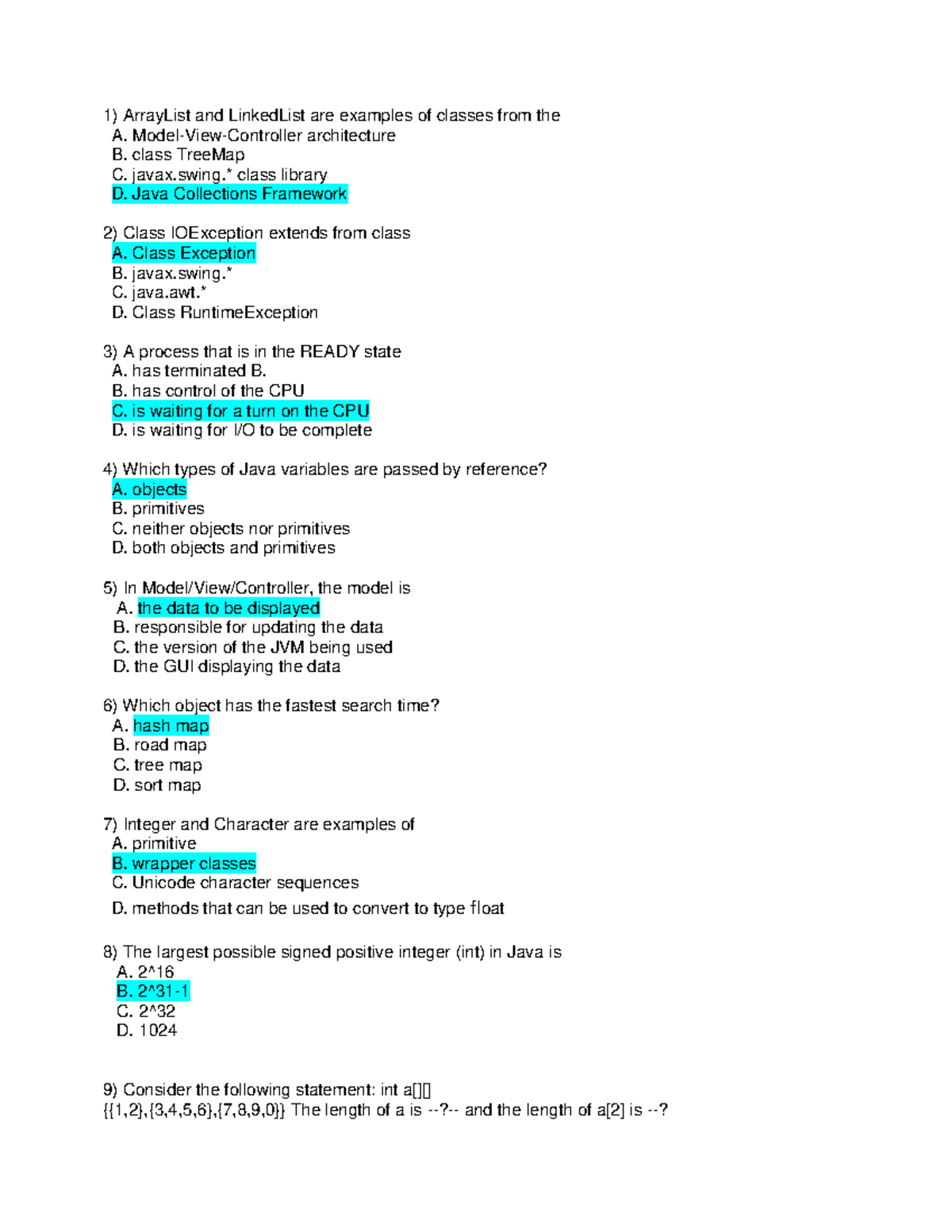 JAVA FINAL PRACTICE EXAM SOLUTIONS PART 1 (ANSWERED) - Studocu