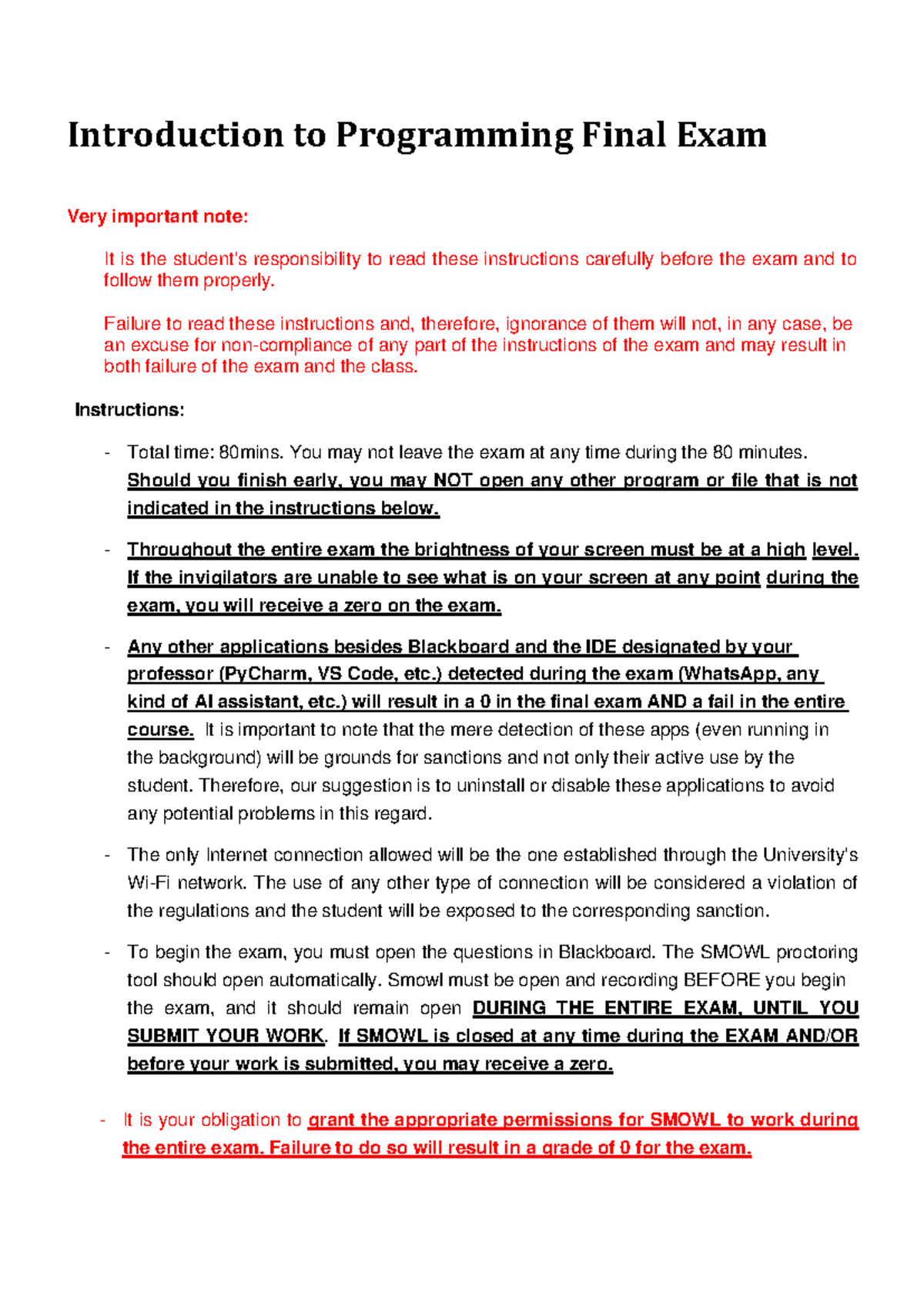 Introduction to Programming (CS101) Final Exam Instructions 2025 - Studocu