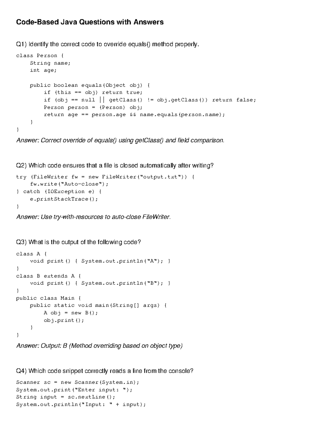 Java QA: Code Questions & Answers for CS101 Final Exam - Studocu