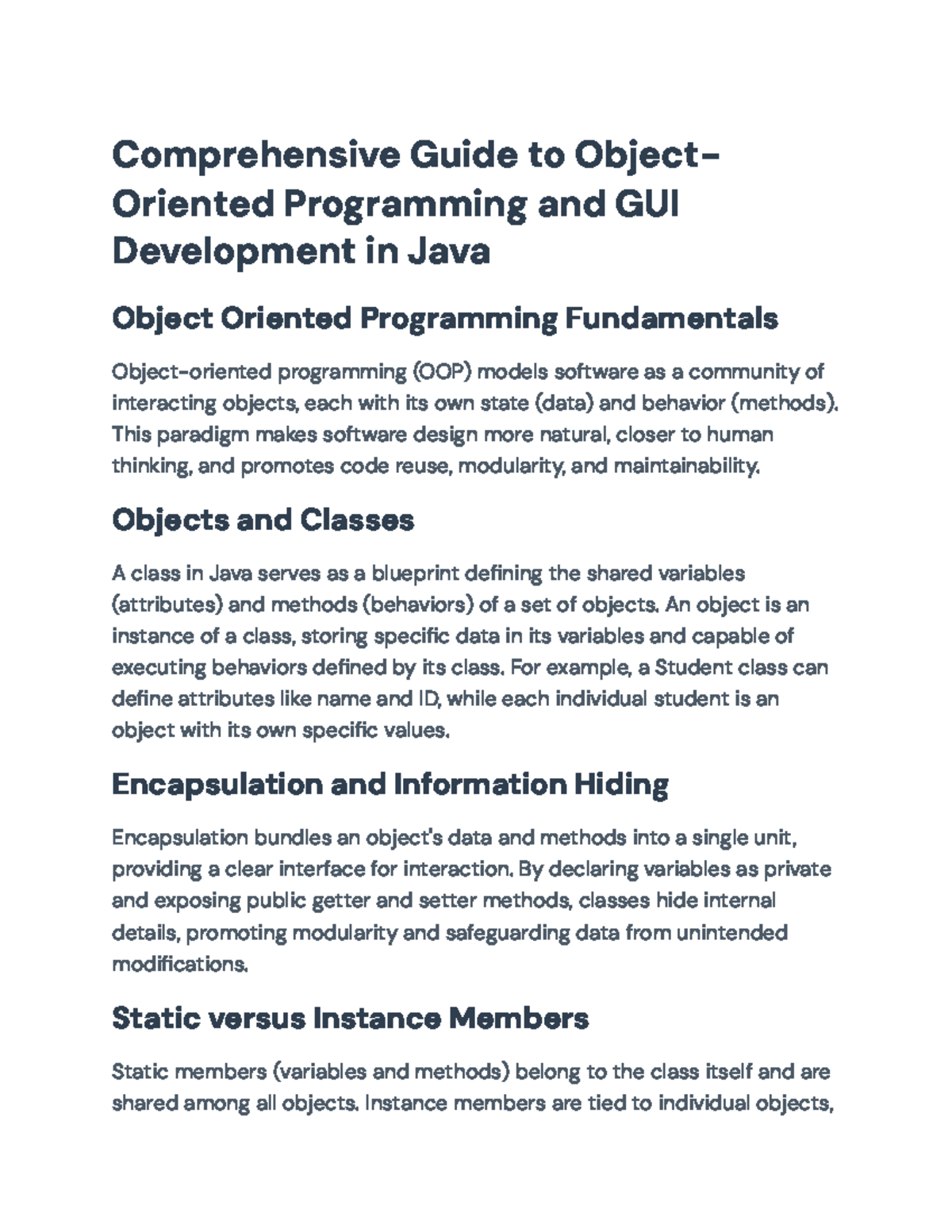 Object-Oriented Programming with Java – Exam Notes (CS101) - Studocu