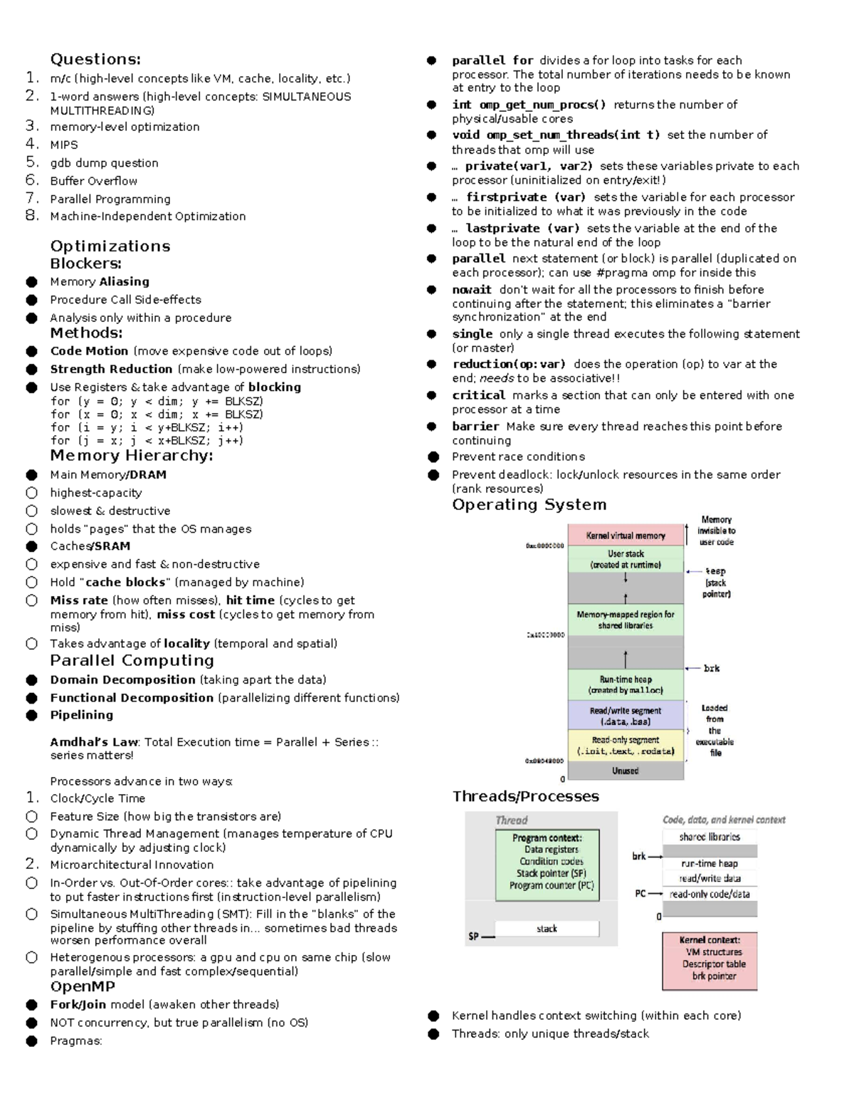 Final Exam Cheat Sheet: Concepts in Parallel Programming & Optimization ...