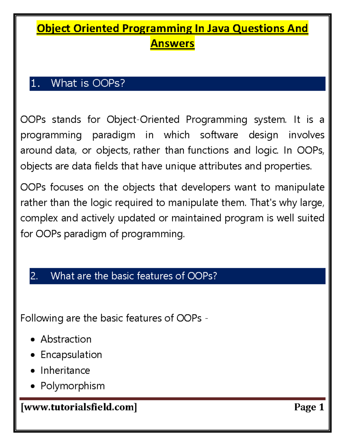 Java OOPs Concepts: Questions & Answers for CS101 Final Exam - Studocu