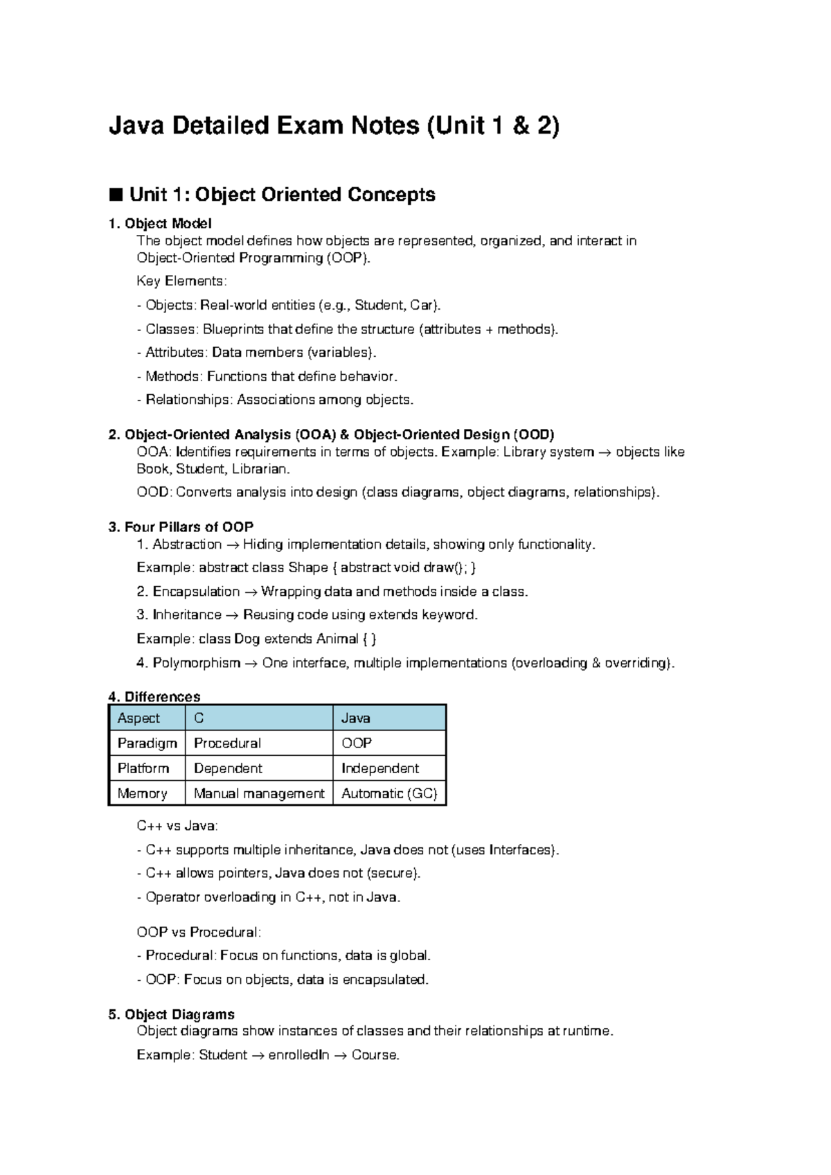 Java Detailed Exam Notes (CS101) - Units 1 & 2 Overview - Studocu