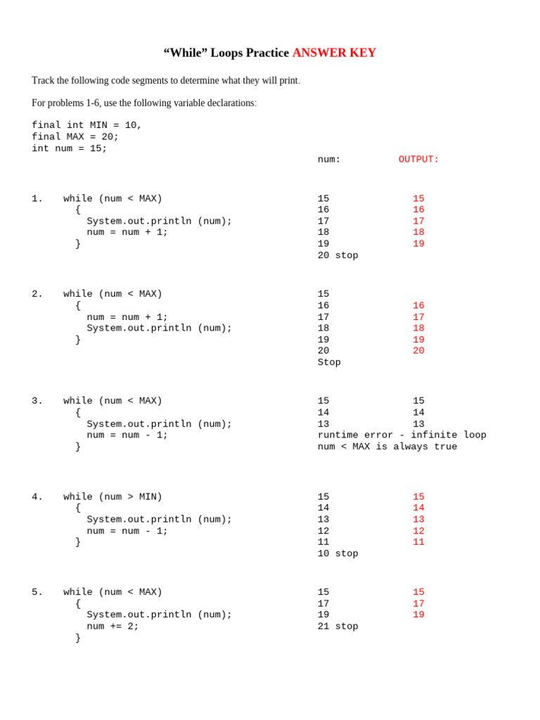 while loops answer key | PDF | Computer Programming | Software Engineering
