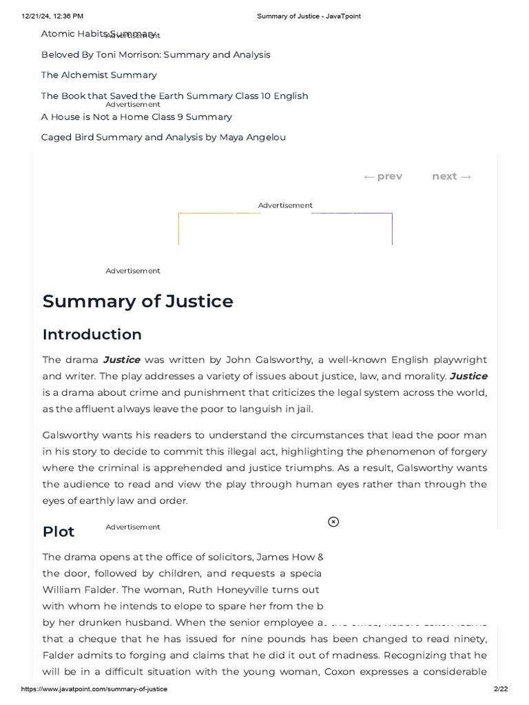 Summary of Justice - JavaTpoint | PDF | Social Psychology