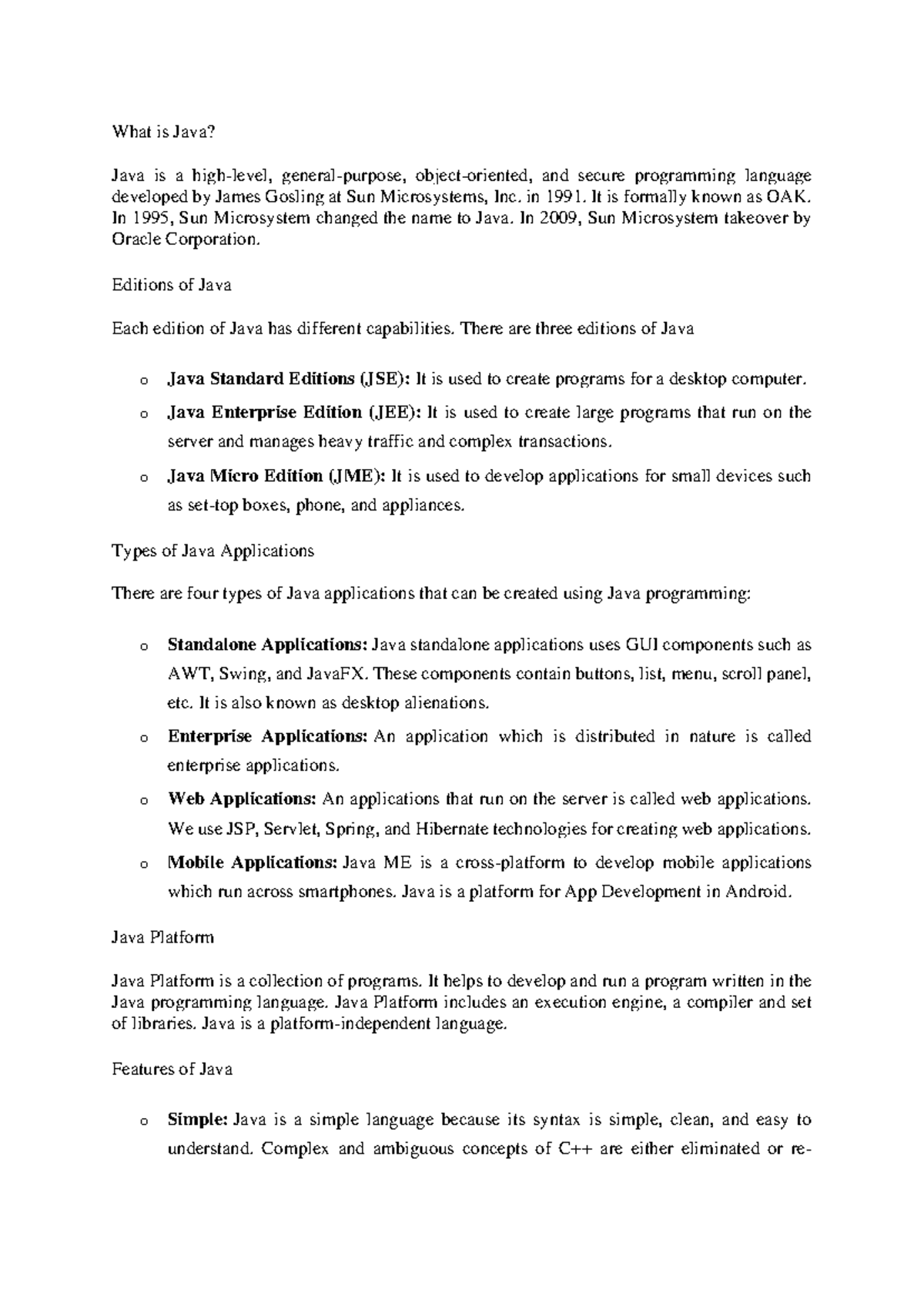 Java Summary - Detailed Notes about JAVA programming - What is Java ...