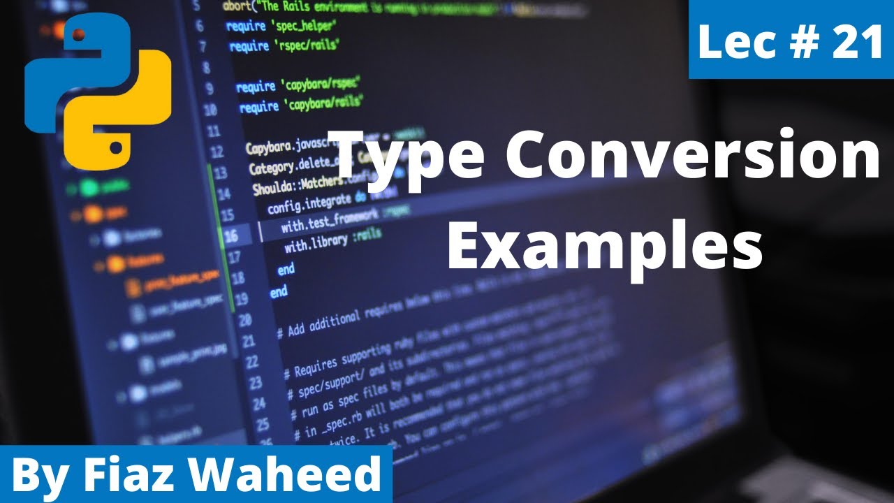 Based on this image's title: “Type Conversion Program Examples, Lec#21 |Python Complete Course for ...”
