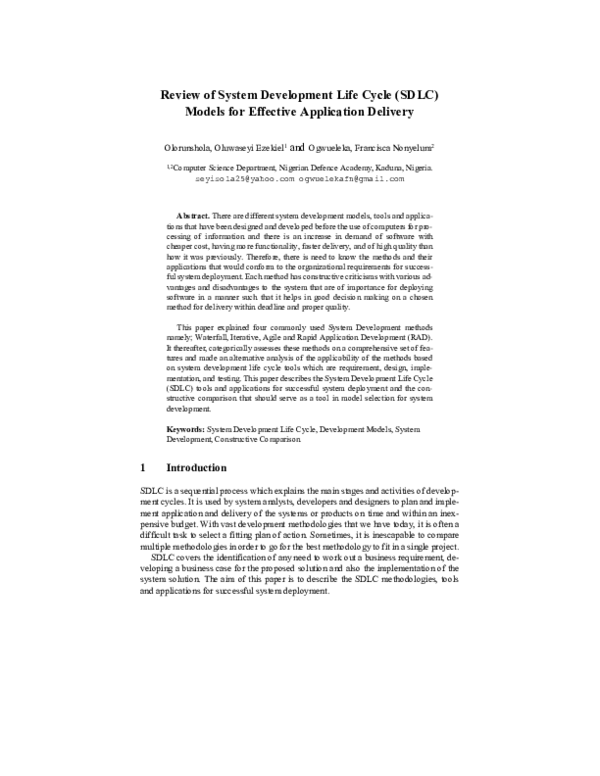 (PDF) Review of System Development Life Cycle (SDLC) Models for ...