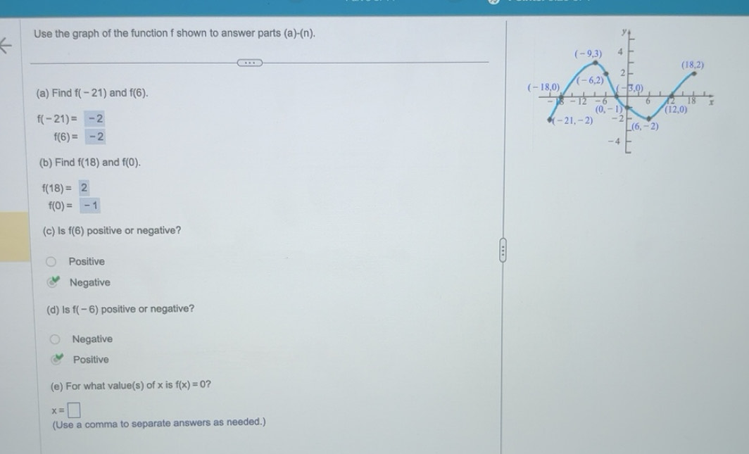 Solved: Use the graph of the function f shown to answer parts (a)-(n ...